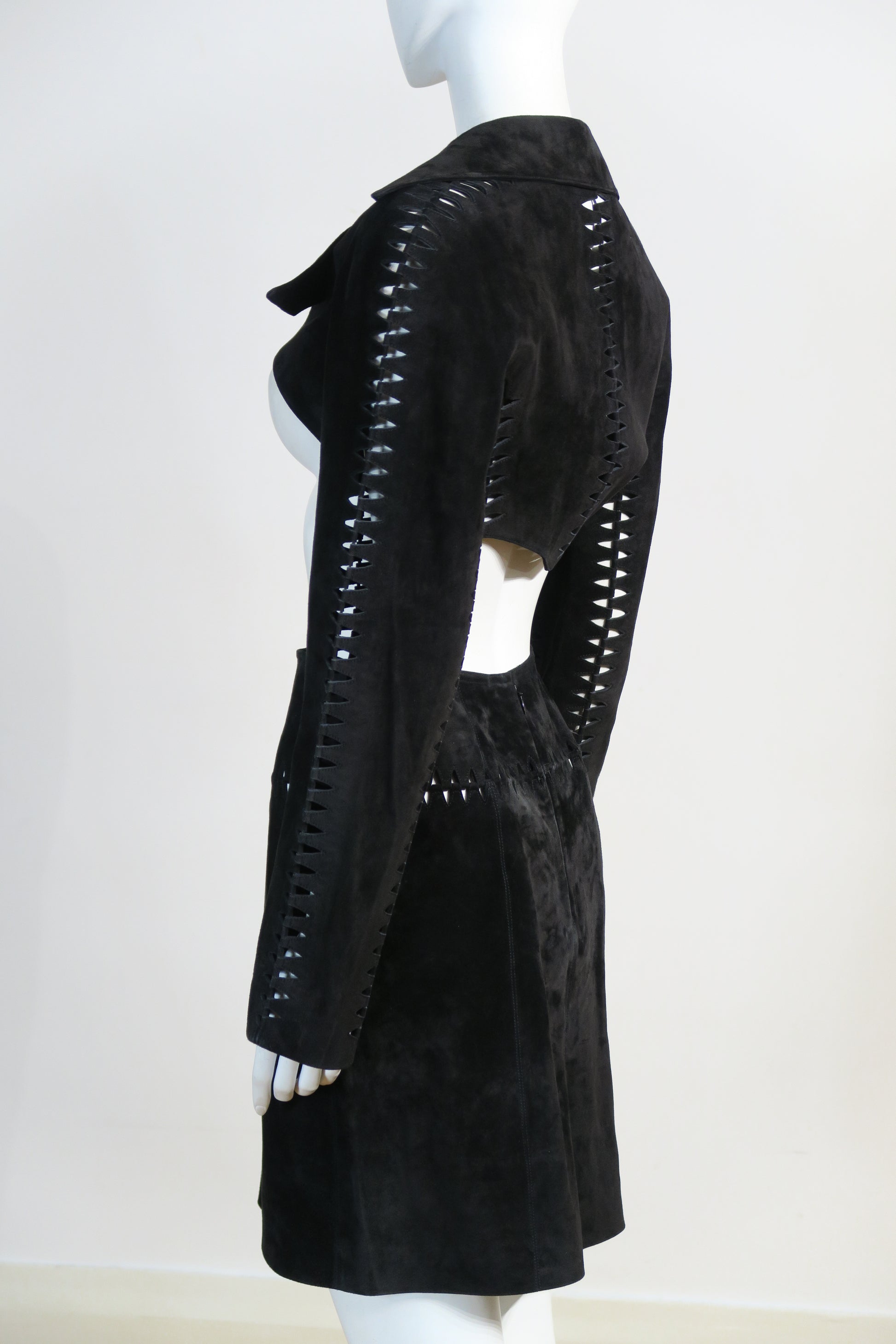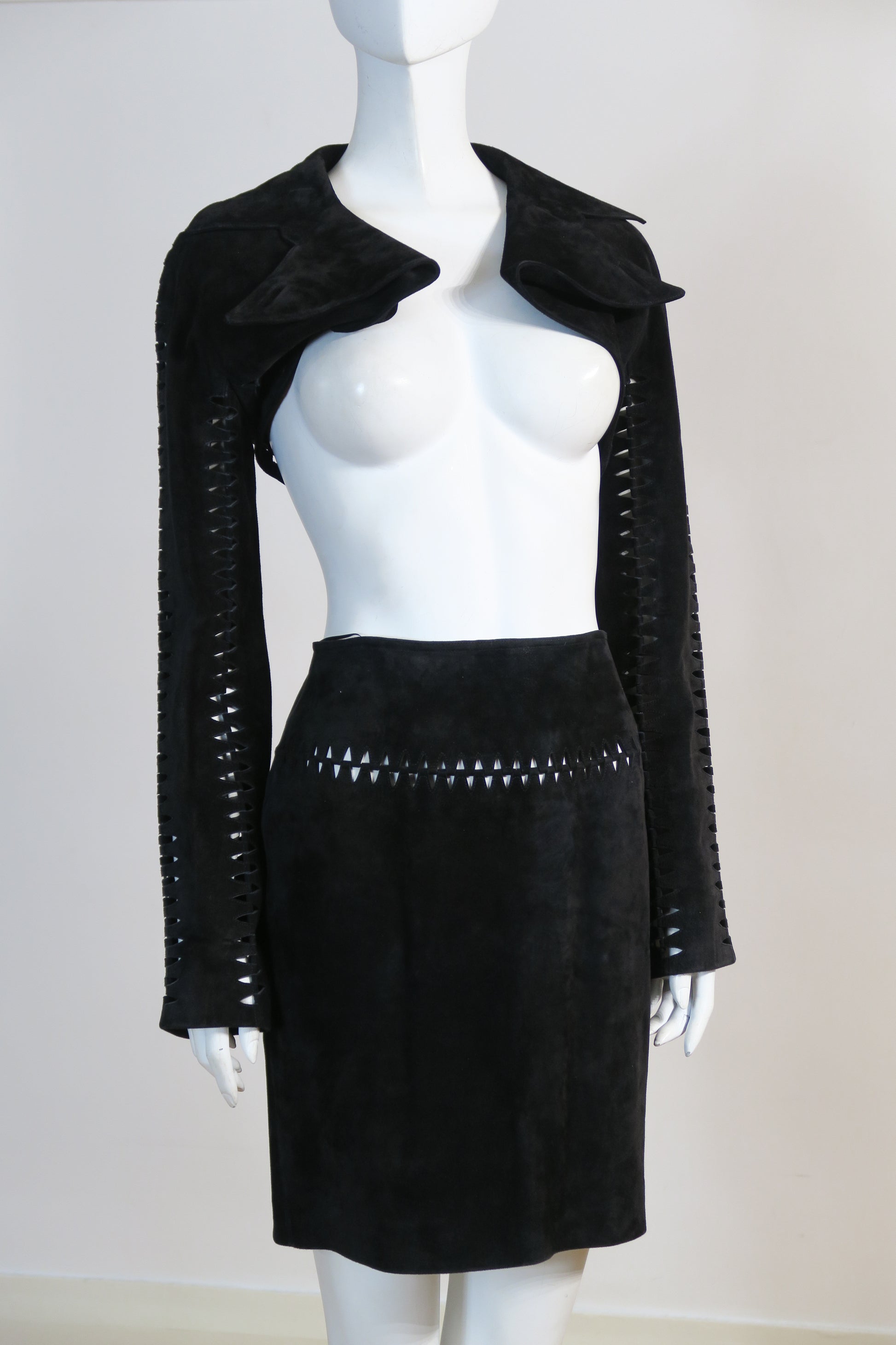 Azzedine Alaia 90's archival leather set. Cropped jacket and matching skirt. Size small. Iconic piece. Never worn.