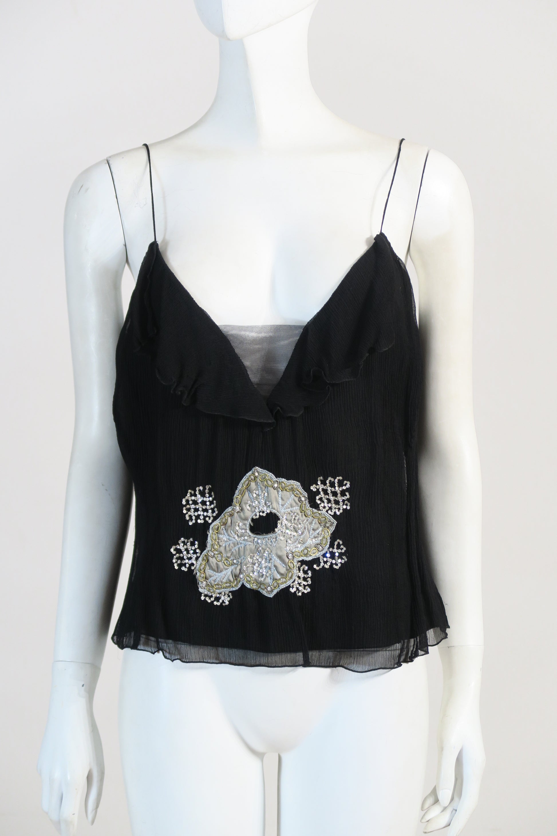 Emporio Armani chiffon silk crystal embroideries tank top. Size small to medium.