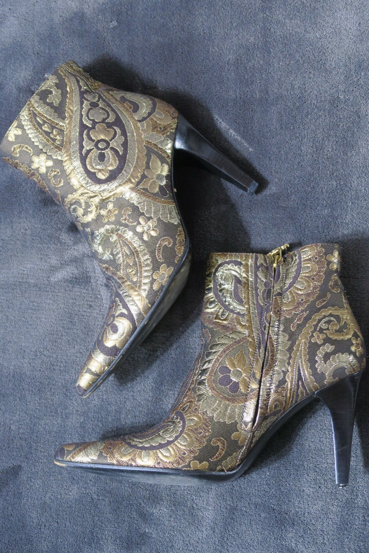 Celine boots heels, jacquard, gold print. Gold hardware. Size 37.