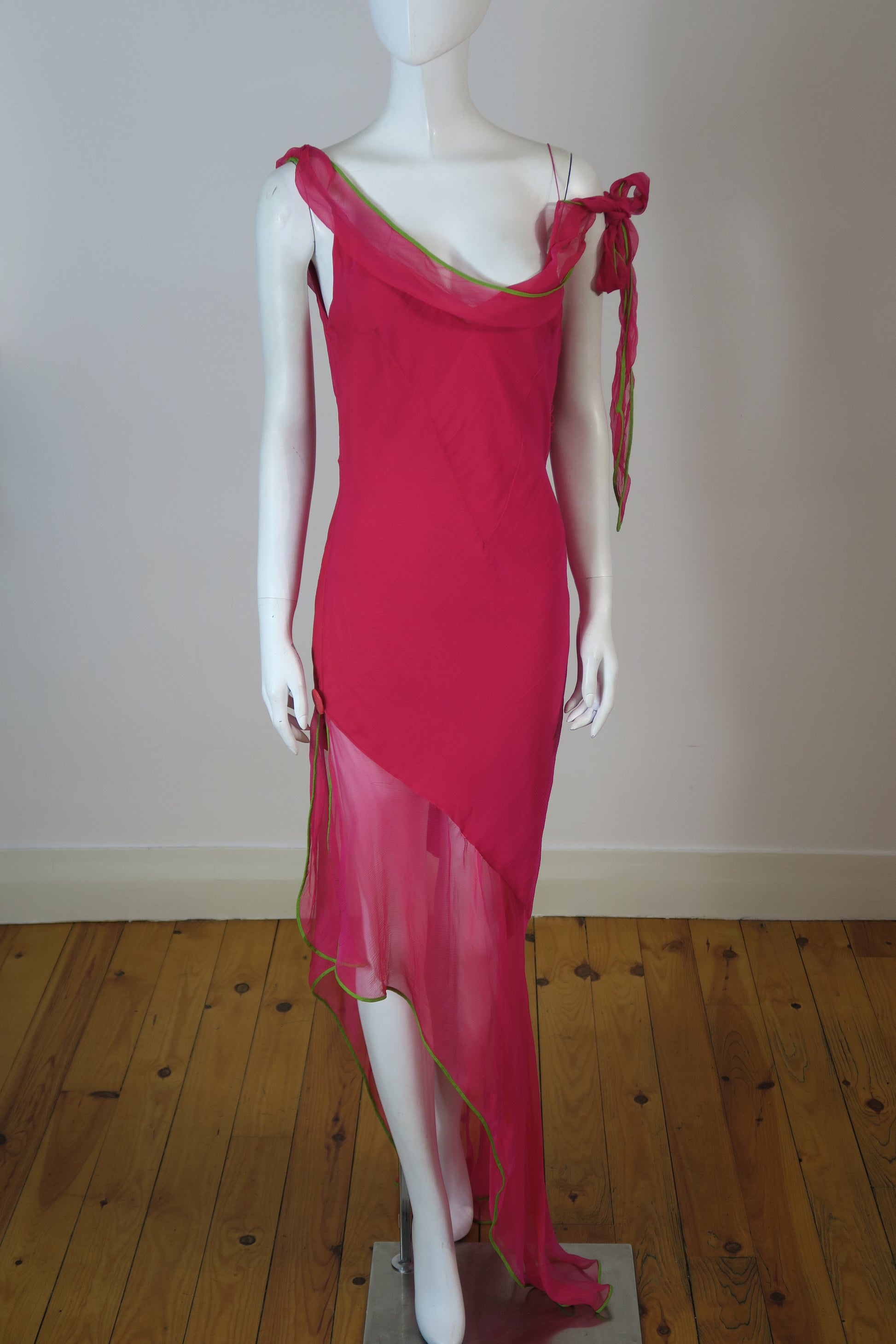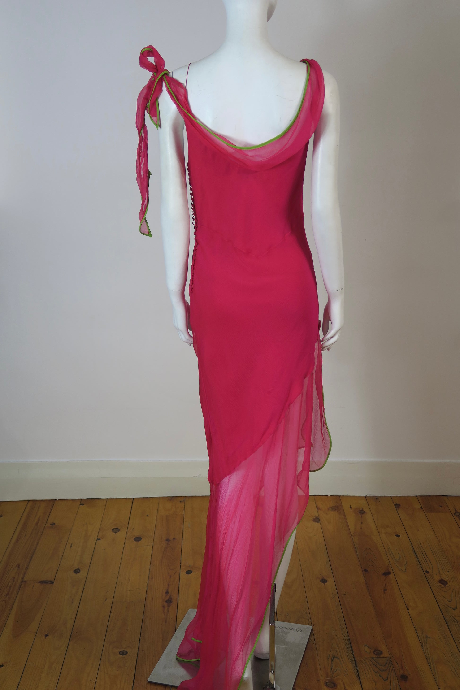 Dior spring summer 2005 runway (Marrakech) maxi chiffon silk dress, green trim. Size 40FR, fits like medium.