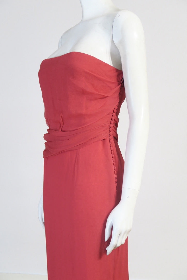 Dior John Galliano cruise 2007 maxi silk tube dress. Stunning pink color. Size 36FR. Silk covered buttons all over.