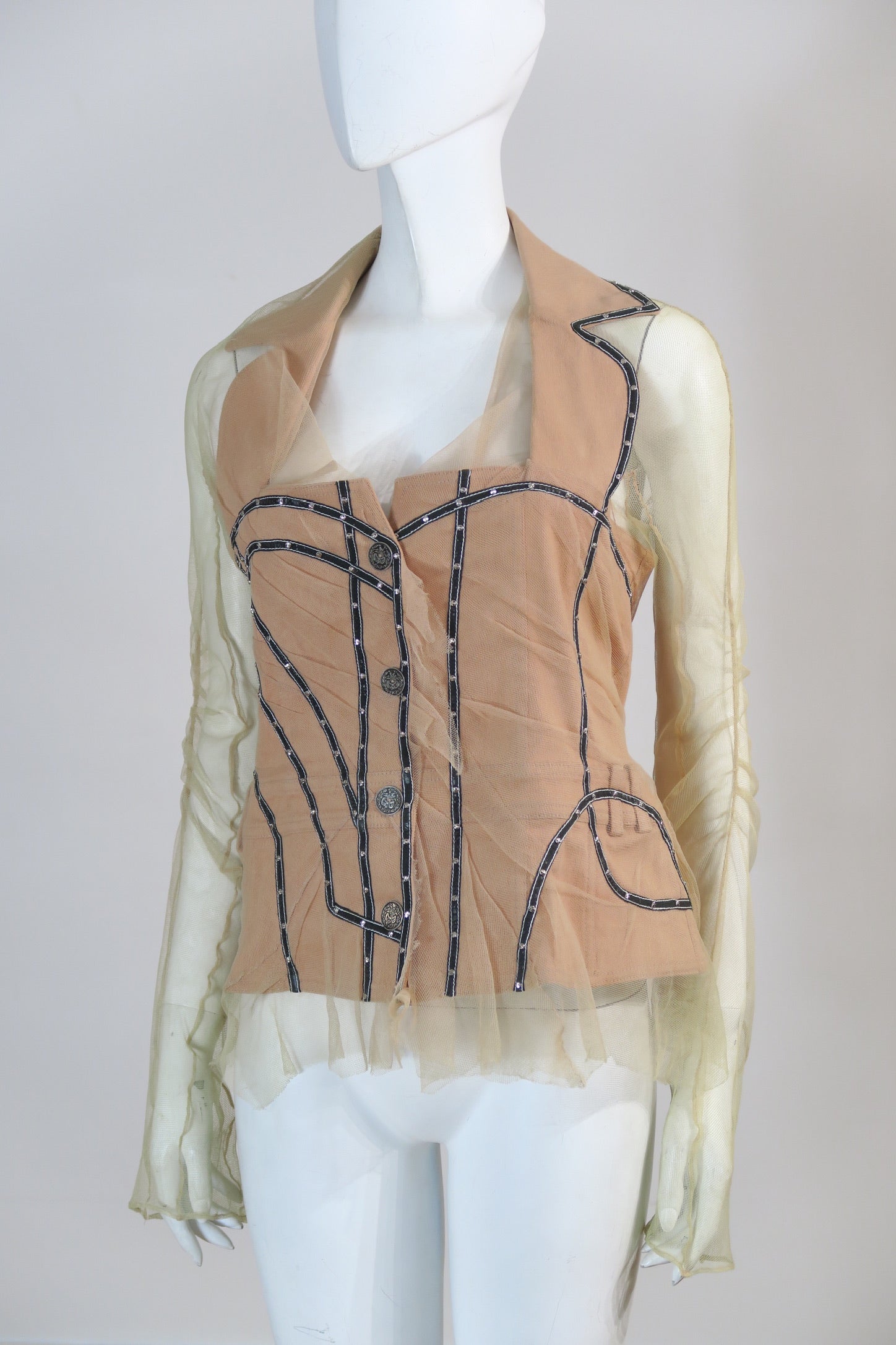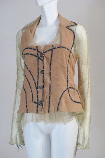Dior spring summer 2006 trompe l'oeil nude light pink jacket. Tulle, cotton. Size 40FR. Few signs of wear on the tulle.