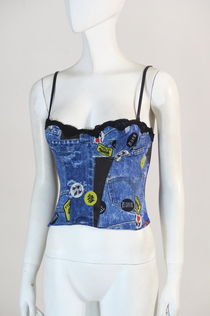 Dior John Galliano fall winter 2001 trompe l'oeil denim corset top. Size 75B. Equals a small.