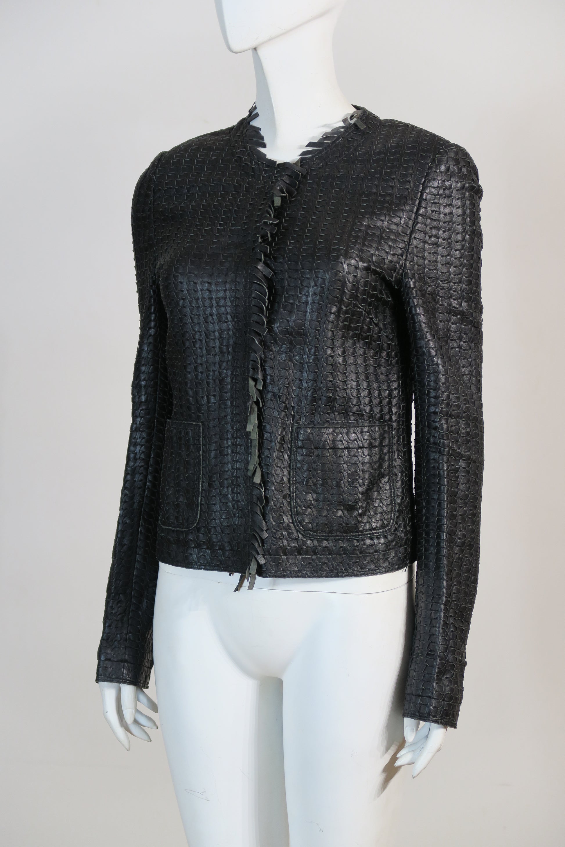 Dolce & Gabbana black twisted leather cropped jacket. Size small.