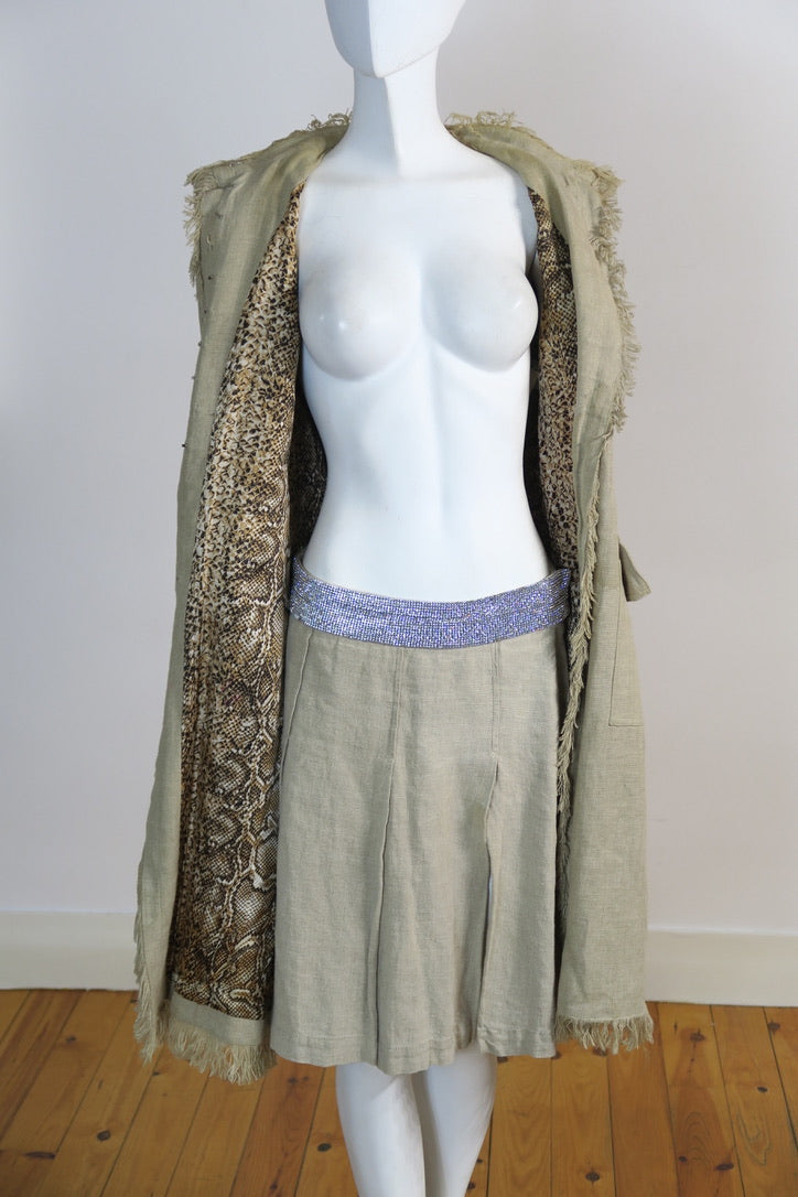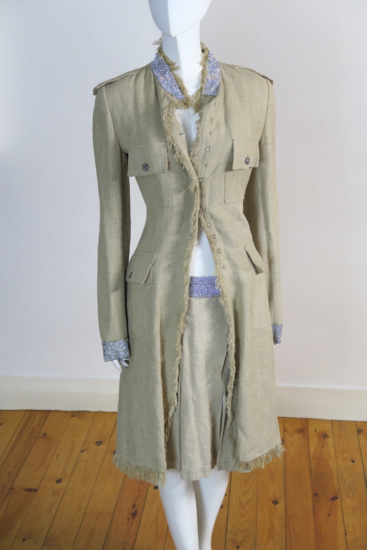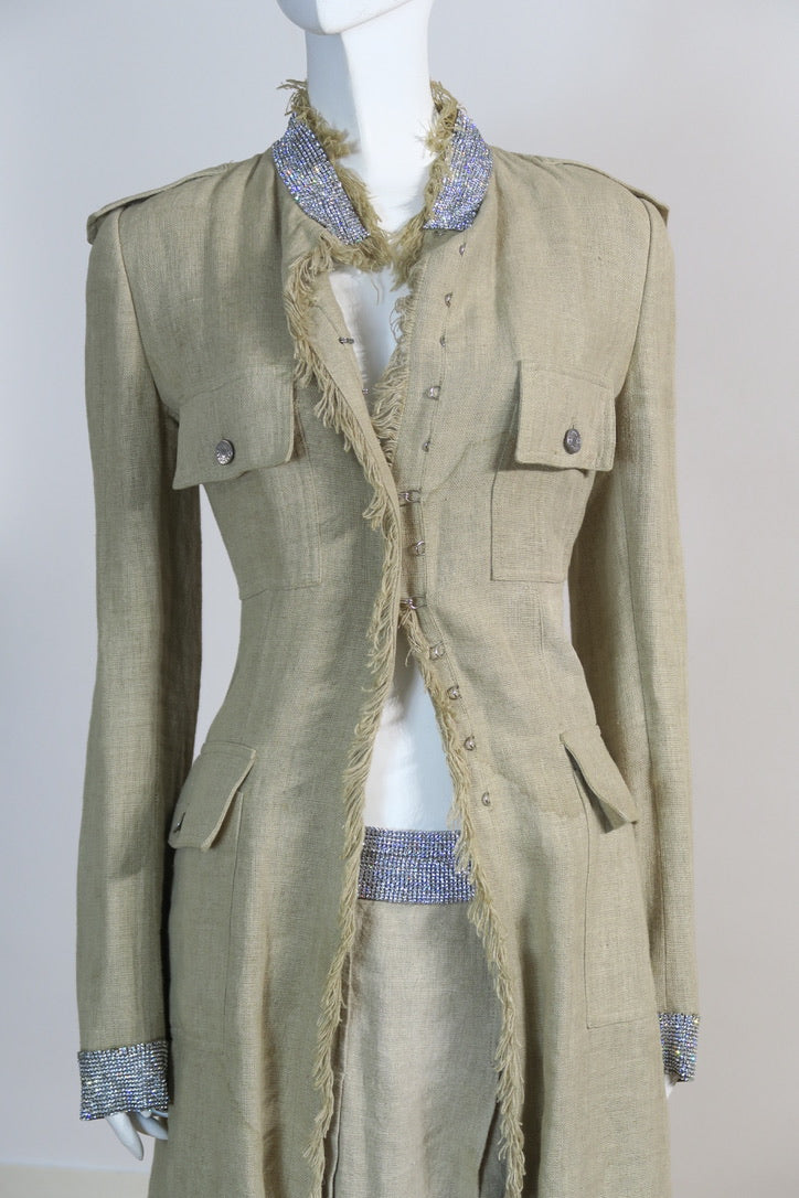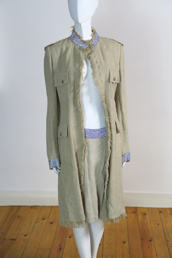 Dolce & Gabbana maxi linen jacket, crystal embellished and matching midi skirt set. Size small to medium.