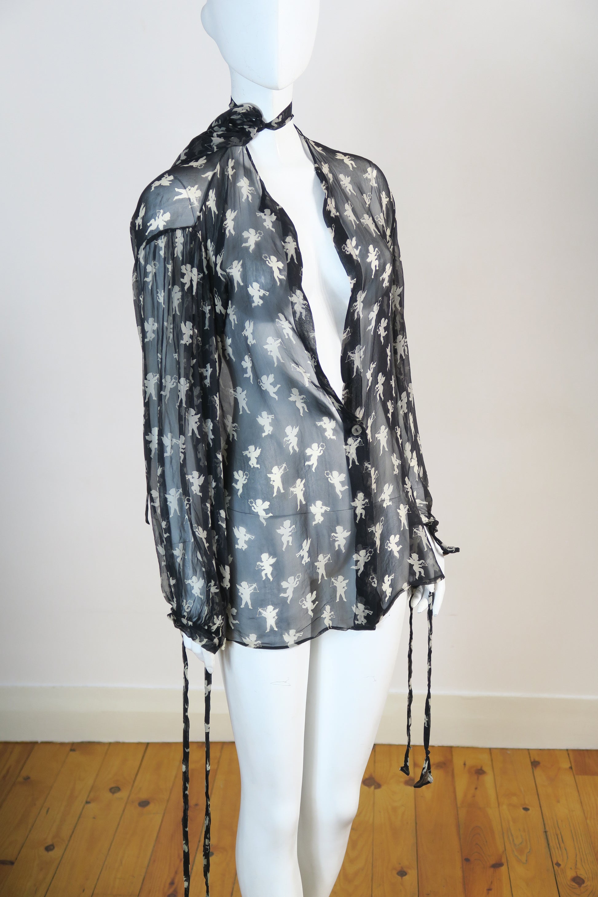 Dolce & Gabbana chiffon silk long sleeve button down shirt top. Neck tie. Size small.