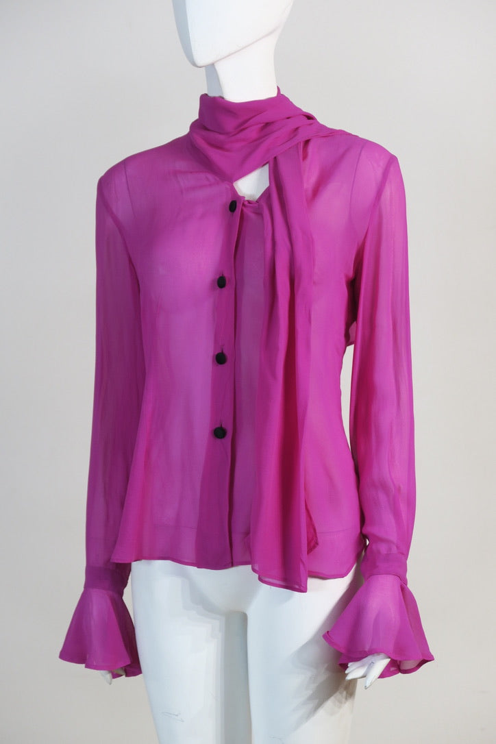 Dolce & Gabbana chiffon silk long sleeve button down shirt top. Neck tie. Bright pink. Size small.