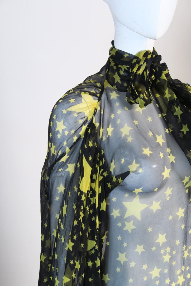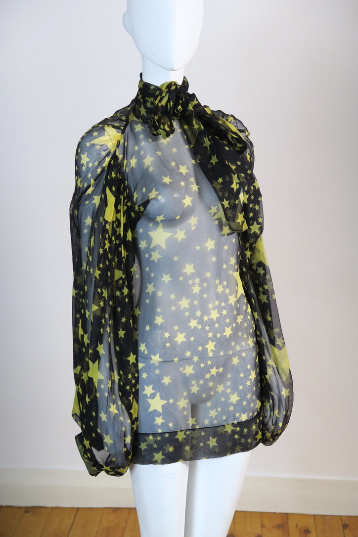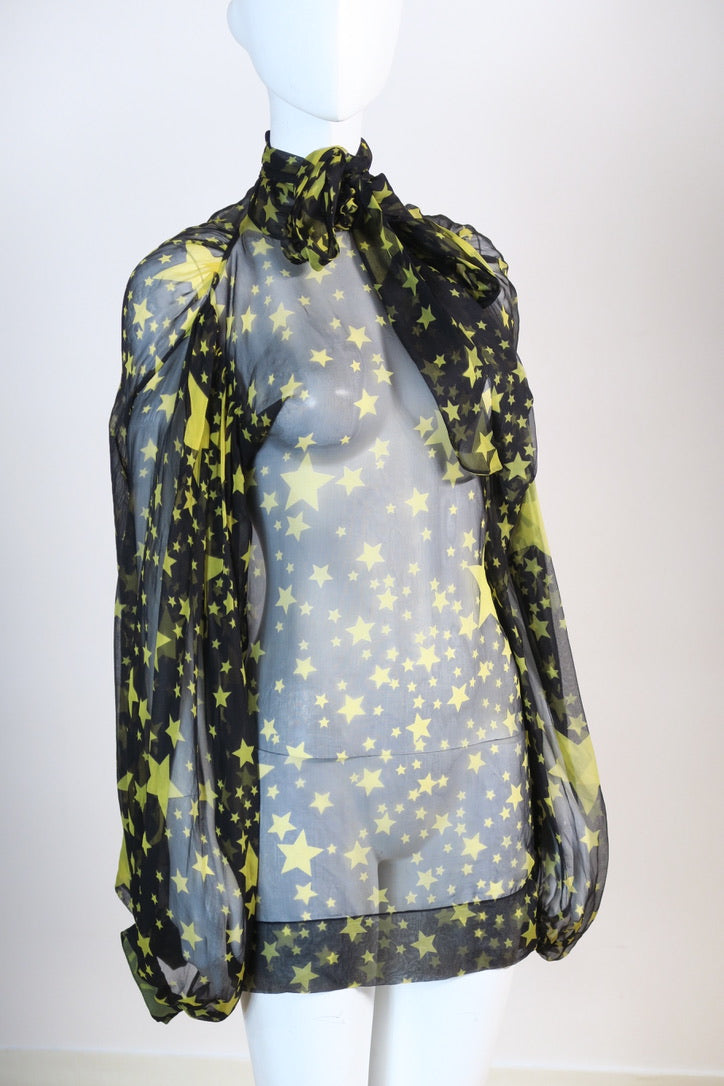 Dolce & Gabbana black yellow printed chiffon silk top. Size medium.