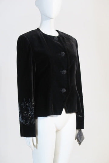 Givenchy black velour velvet jacket, beautiful buttons, beads on the sleeves. NWT. Size medium to large.