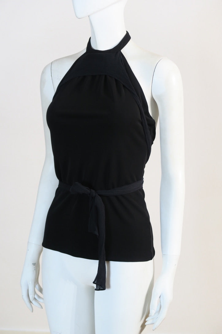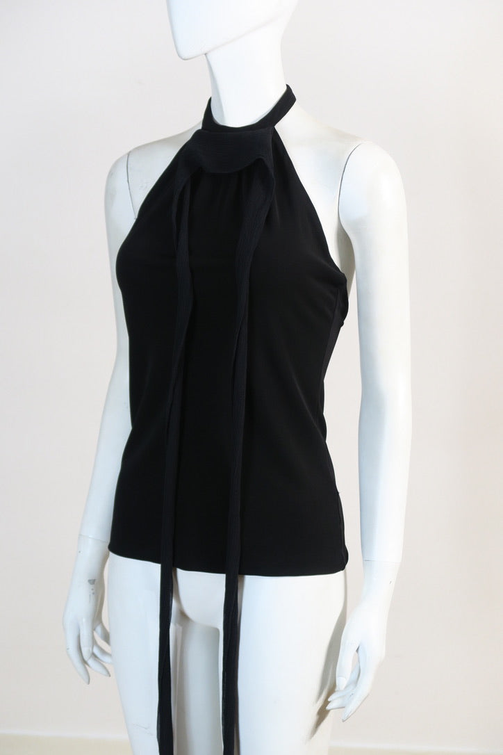 Gucci Tom Ford black tank top, silk wrap up neck tie. Size small. Backless; halter fit.