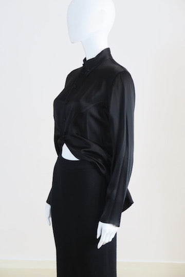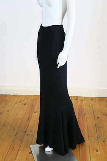 Jean Paul Gaultier satin silk long sleeve button down shirt and maxi wool skirt set. Size small to medium.