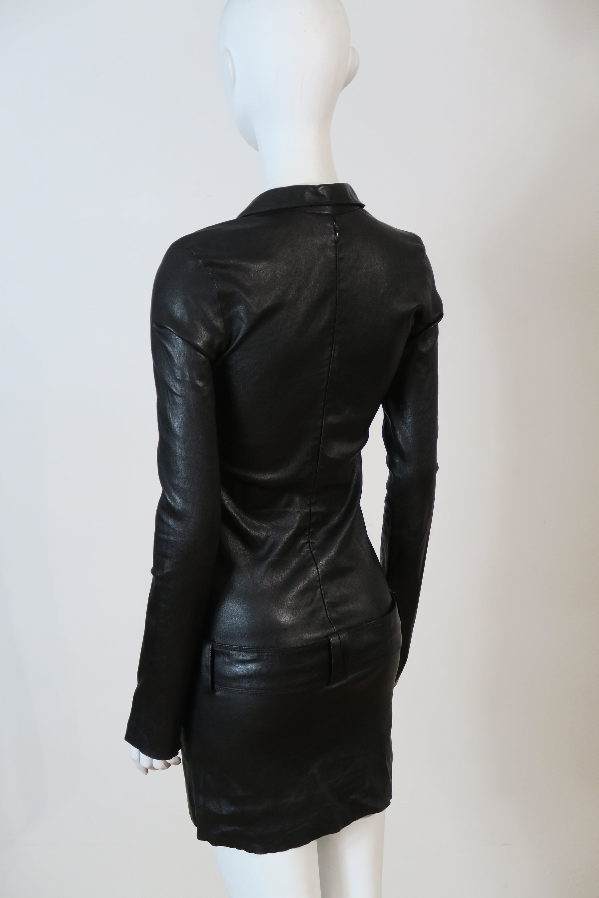 Jitrois black leather mini dress, buckle skirt. Size small.