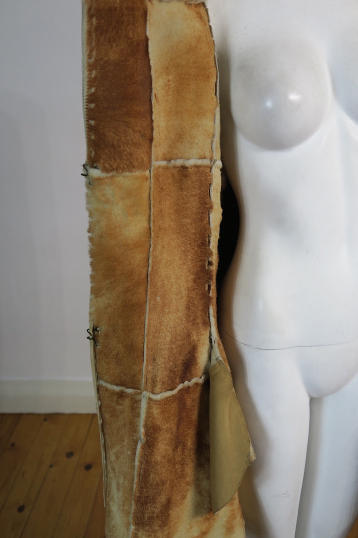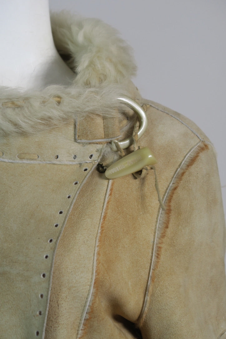 Roberto Cavalli hand painted shearling midi jacket. Size medium.