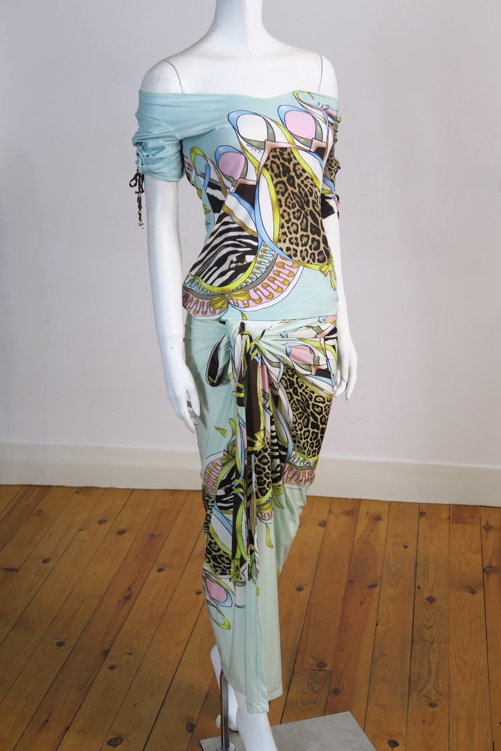 Cavalli top (SZ L) and matching stretchy maxi wrap up pareo.