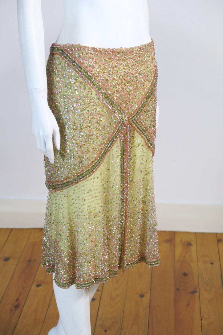 Valentino suede leather jacket, beaded trim and matching fully hand beaded sequins skirt set