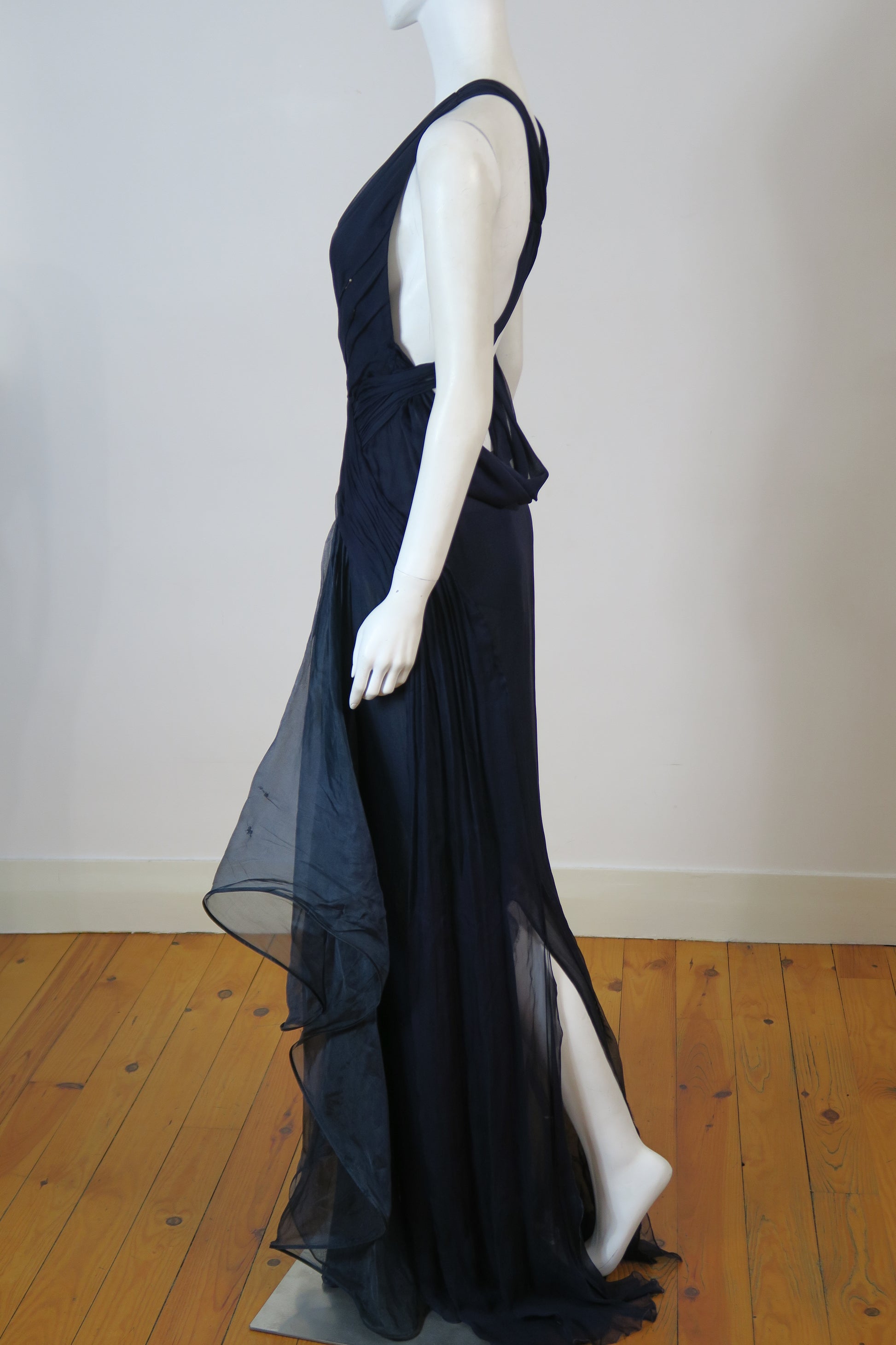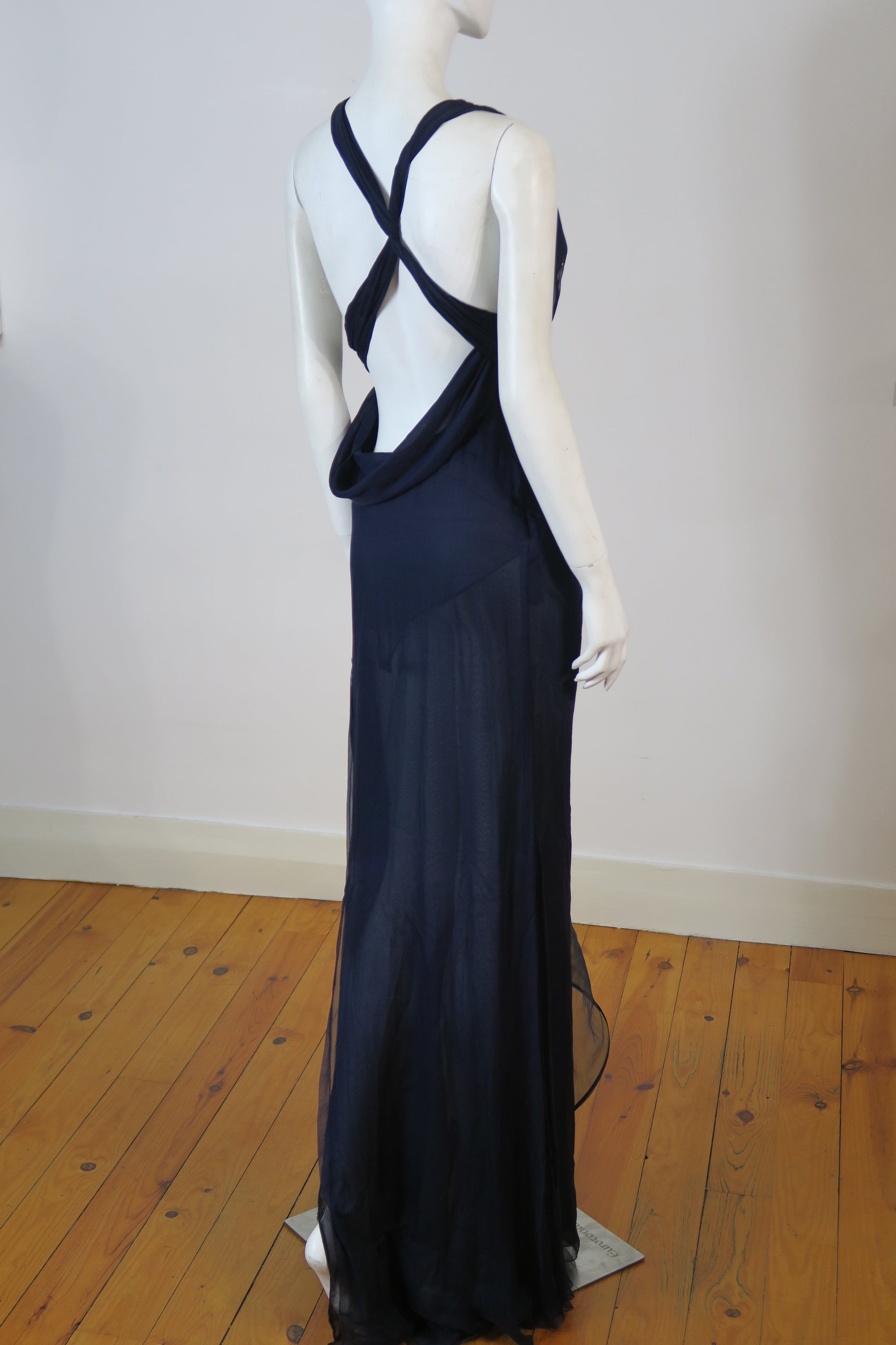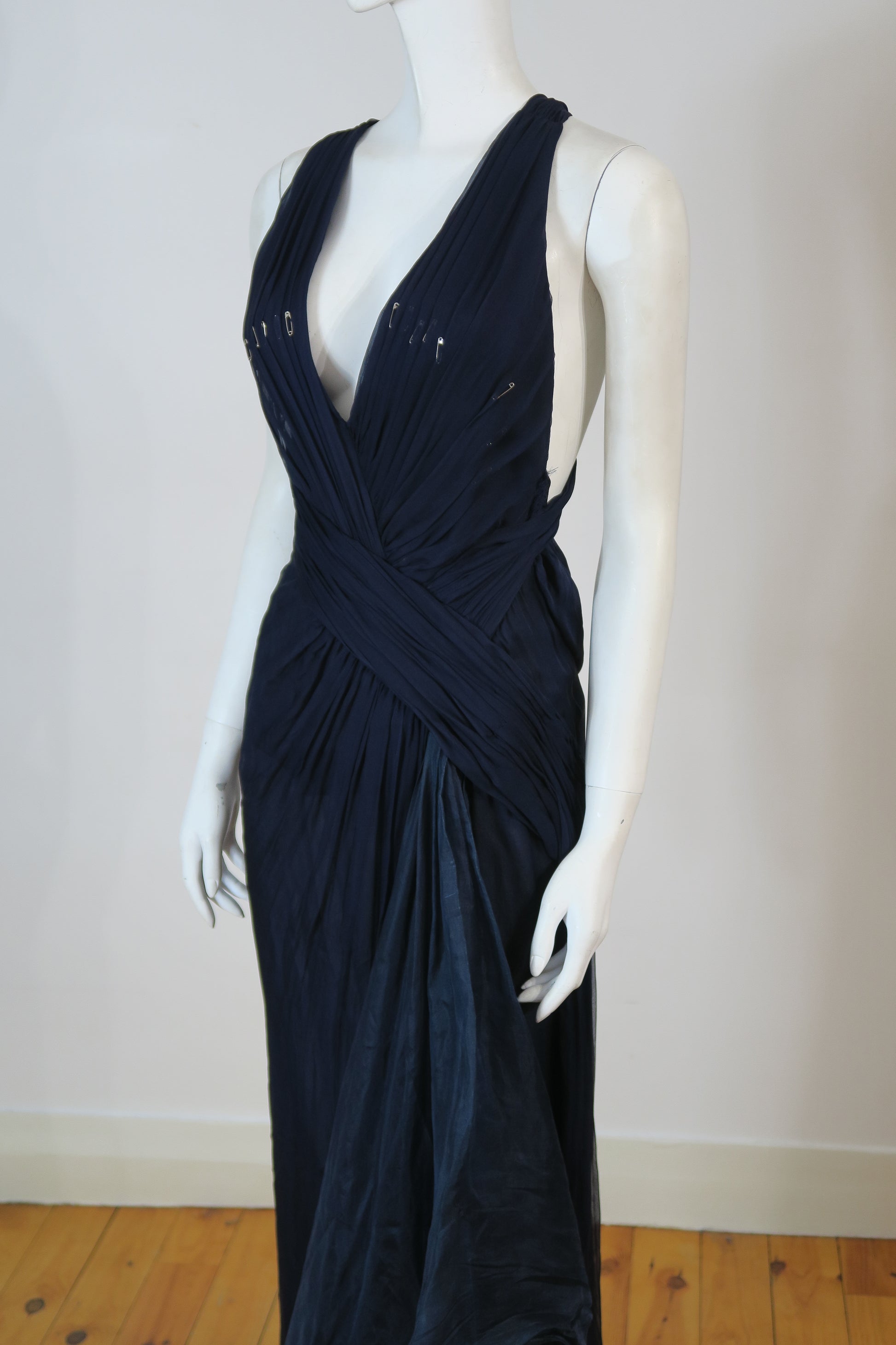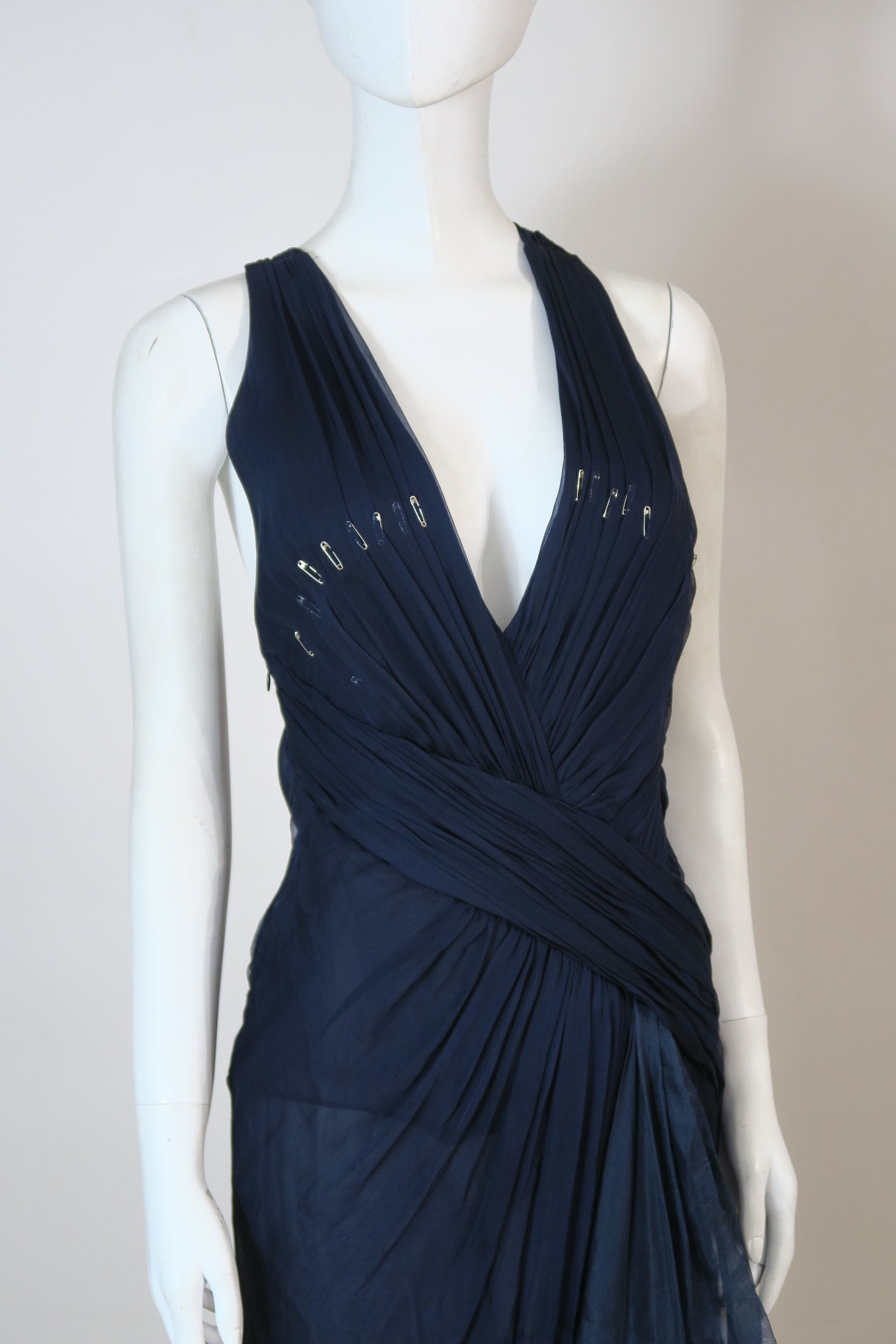 Versace navy maxi dress, safety pins, size small