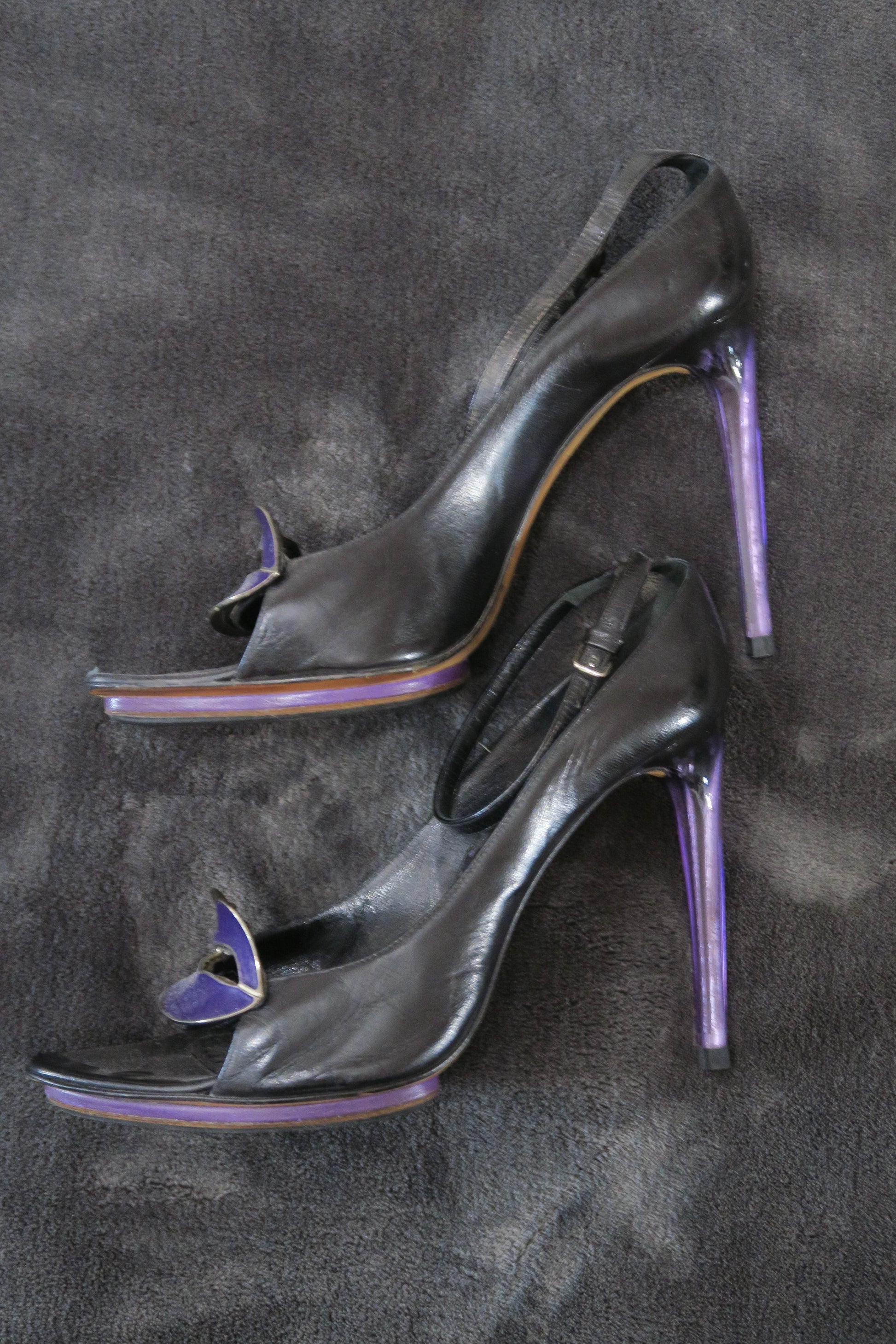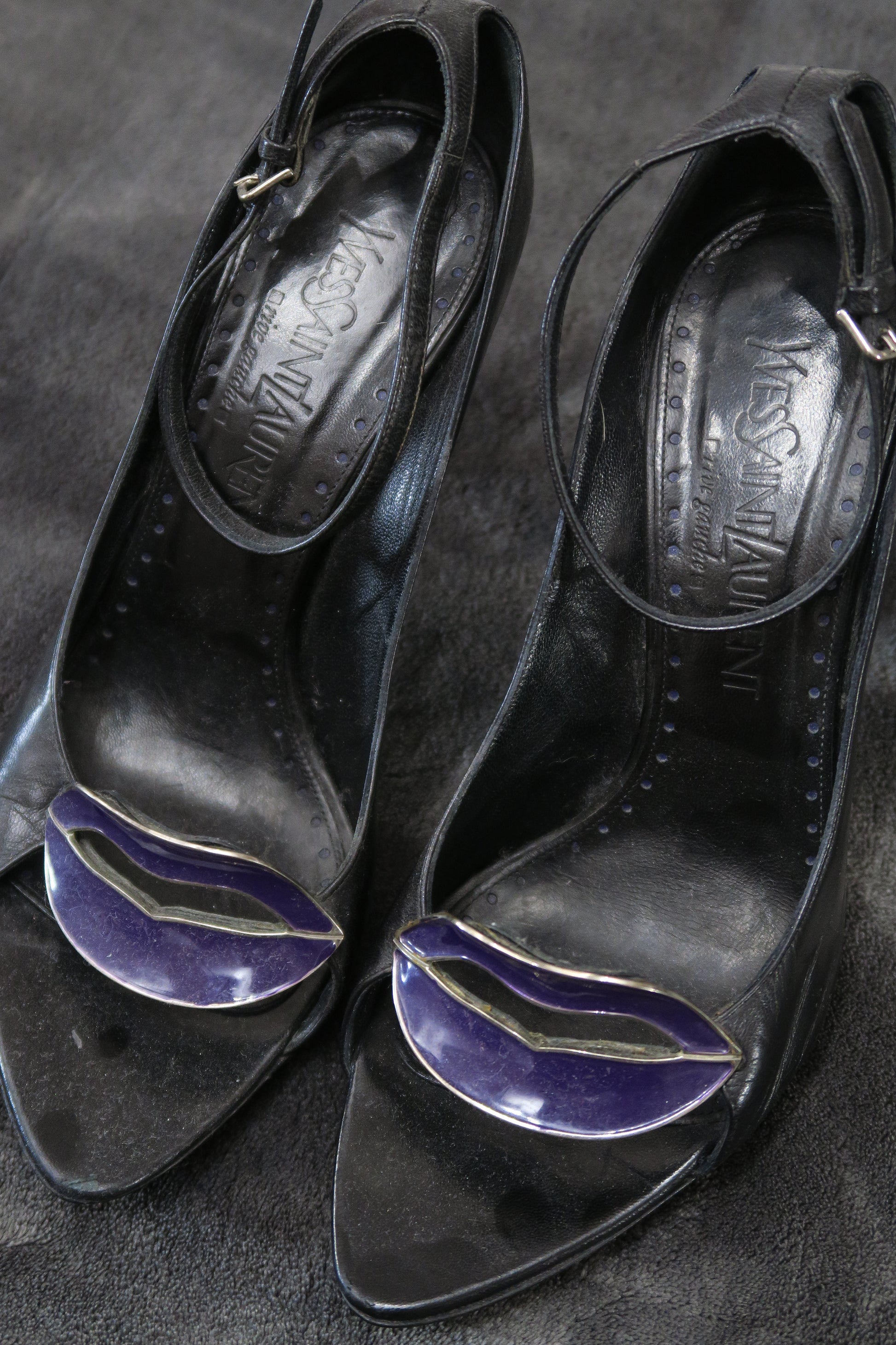 Yves Saint Laurent heels, black leather, purple lips and heels. Size 38.5